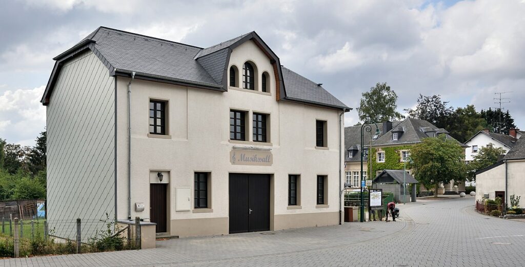 Music has long been part of social life. The Fanfare Boulaide, founded in 1939, endured the disruption of the Second World War and celebrated its rebirth in 1947 with its first flag. Anniversaries and concerts have strengthened its place in the community. The music pavilion, originally from Niederwiltz and rebuilt in Boulaide in 1949, remains a focal point for gatherings. The former Molkerei building, converted into a music hall in 1993, continues this tradition.